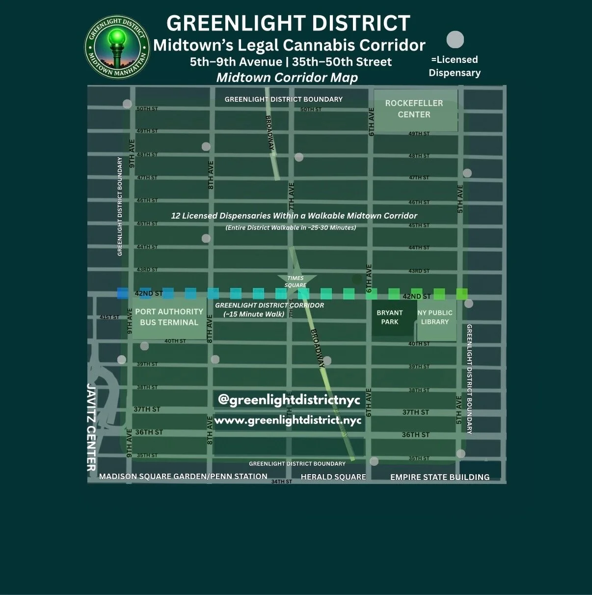 Midtown Manhattan already contains one of the highest concentrations of licensed cannabis dispensaries in the city within a walkable corridor.